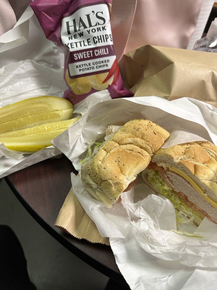 Chicken cutlet, cheddar, bacon, avocado, lettuce, Cajun majo on garlic hero.