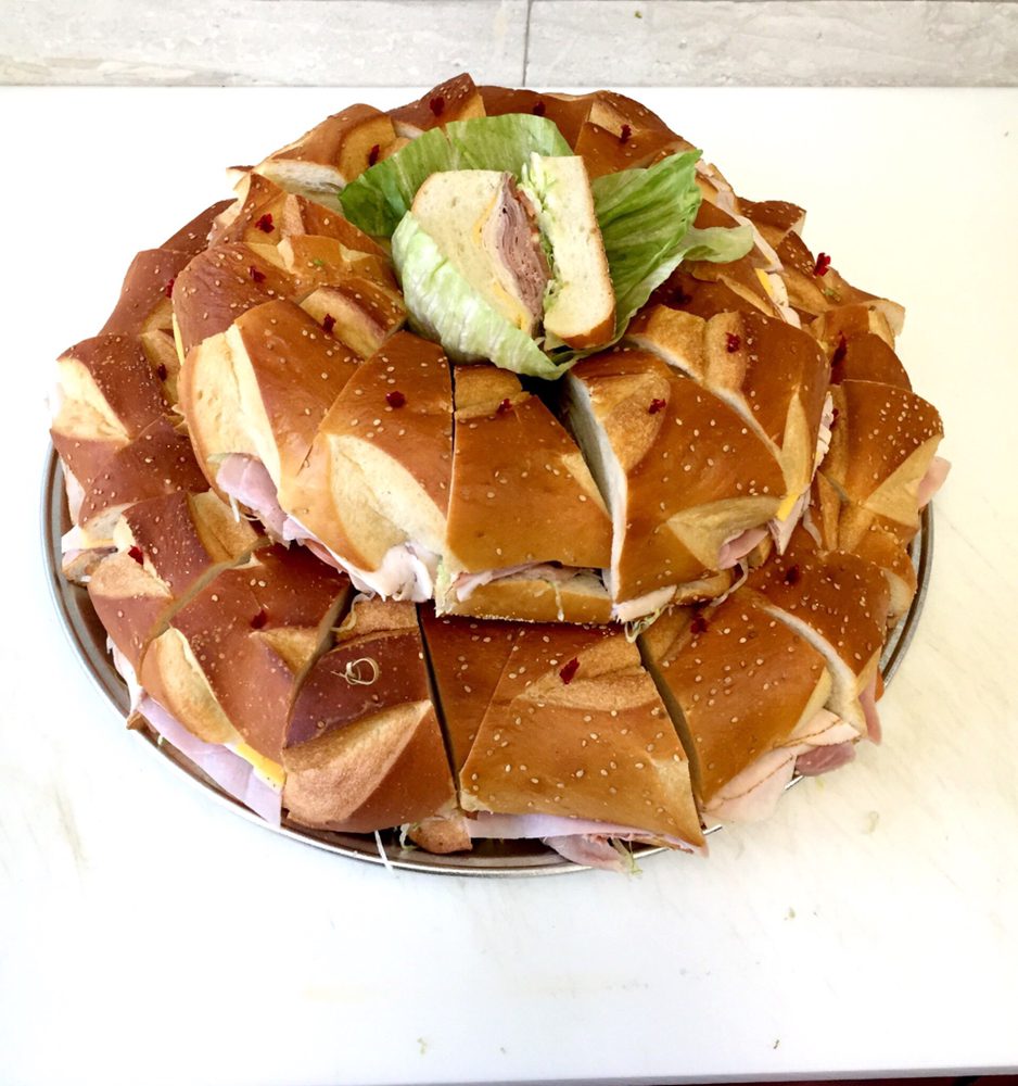 Ham, Swiss, turkey, lettuce, tomato, and hard-boiled egg.