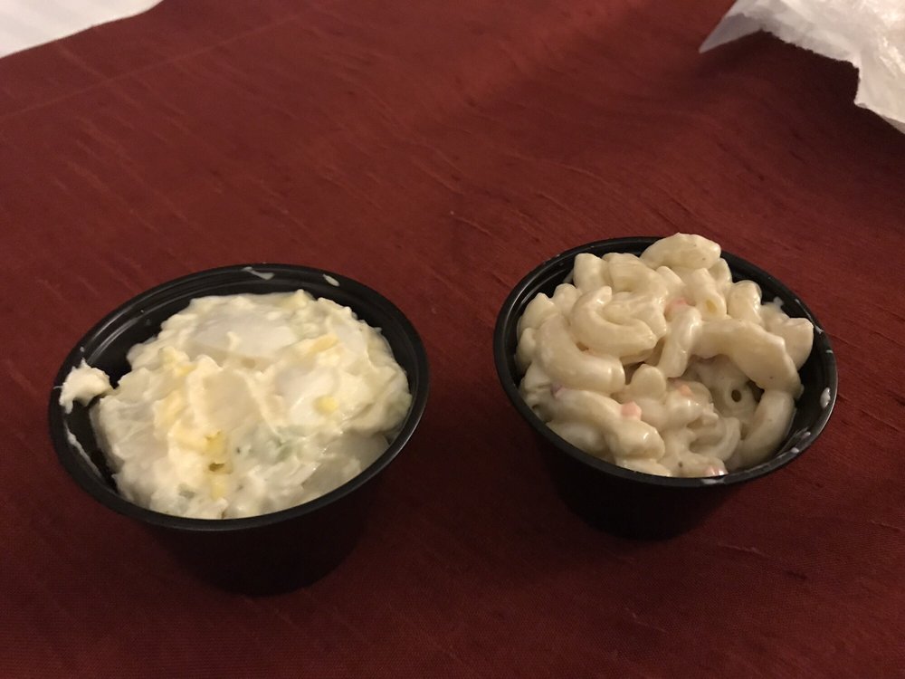 Onions, bacon, cheddar cheese, and BBQ sauce.